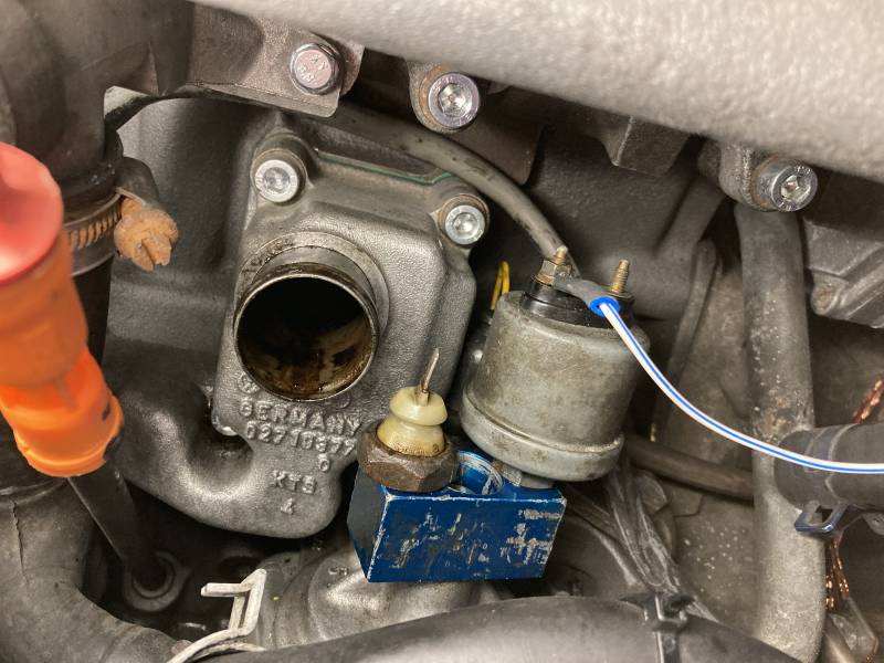 Ist der Öldruckschalter defekt? Ich säuberte alles, so dass es schön trocken war und habe den Motor gestartet und schon hat sich am Steckkontakt des Öldruckschalters ein Tropfen gebildet. Hier ist es also Undicht.