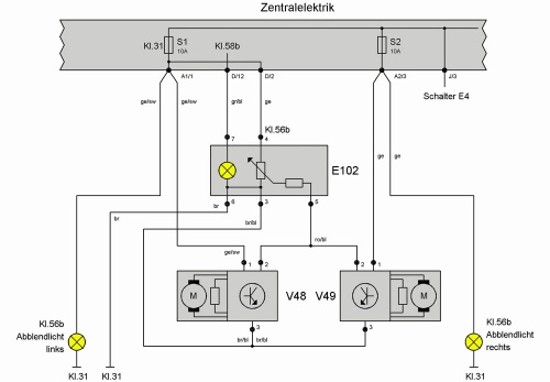 muss das Thema nochmals hochholen, komm mit der LWR nicht ganz klar. Meine Scheinwerfer sind ganz nach unten gefahren. Brauche dafür dringend einen Stromlaufplan! Hat mir den einer? Bzw kann mir einer erklären wie der Strom zu den Stellmotoren fliesst?