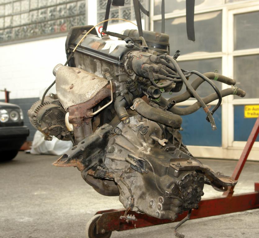 (1) Motor: 1,4l - 44 KW - 60 PS - Motorkennbuchstabe ABD - mit allen Anbauteilen (Getriebe, Anlasser, Lichtmaschine, Krümmer, Hosenrohr etc.). Laufleistung ca. 164.000 km. Lief vor dem Ausbau einwandfrei. Motor ist trocken, kein Ölverlust.
