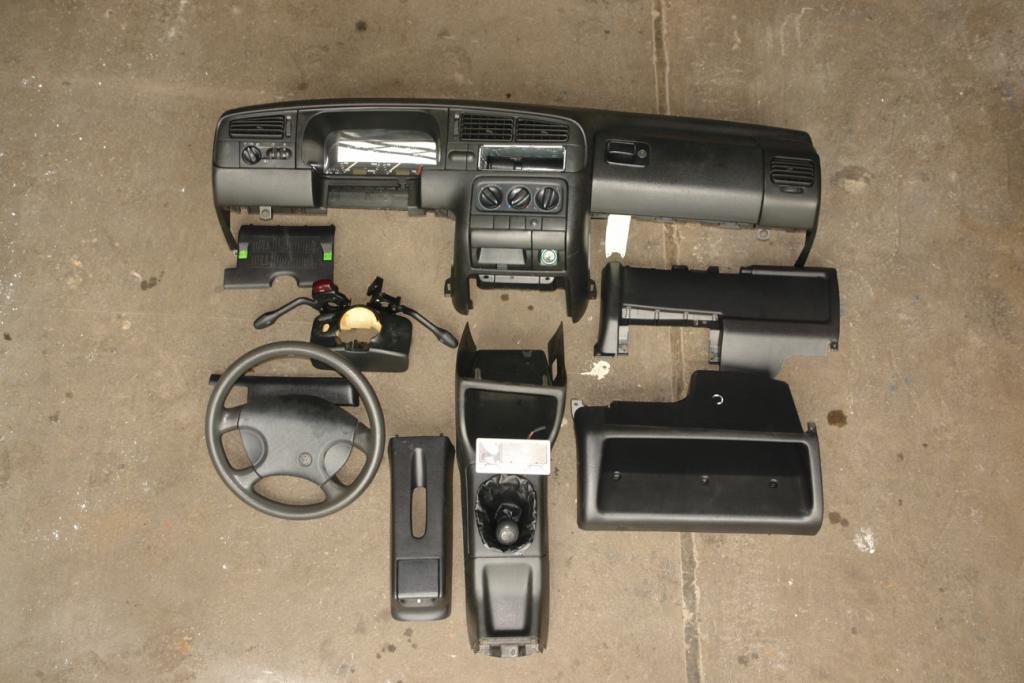 (2) Armaturenbrett mit allem drum und dran: Guter gebrauchter Zustand. Sorgfältiger Ausbau, alle Teile sind vorhanden (siehe Foto) - keine Halter sind abgebrochen! > Der Tacho ist aber schon weg. 120Euro