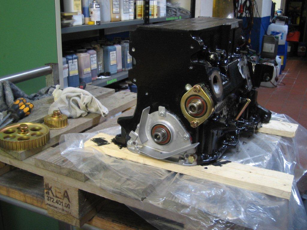 Das Problem mit dem Zahnriemenschutz habe ich nun auch gelöst, nachdem ich wußte wie so ein "alter" Zahnriemenschutz aussehen muß habe ich bei meinen gesammelten Teilen gesucht und einen gefunden. Nur gefiel mir nicht damit da der Zahnriemen nicht kpl. abgedeckt ist, und da ich den "neuen" Zahnriemenschutz schon gekauft hatte, habe ich den Kurbelwellenflansch ab '79 bestellt und eingebaut.