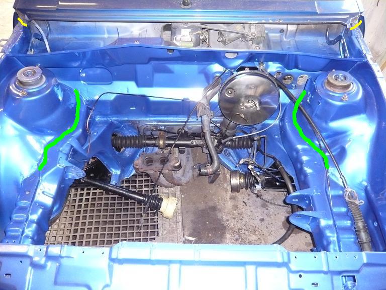 Bei den gelben Markierungen hab ich schon gesehen, das da ganz leichte risse in dem Karrosseriezement (heist doch so oder?) sind. (Also die Masse die in die übergänge geschmiert wurde)