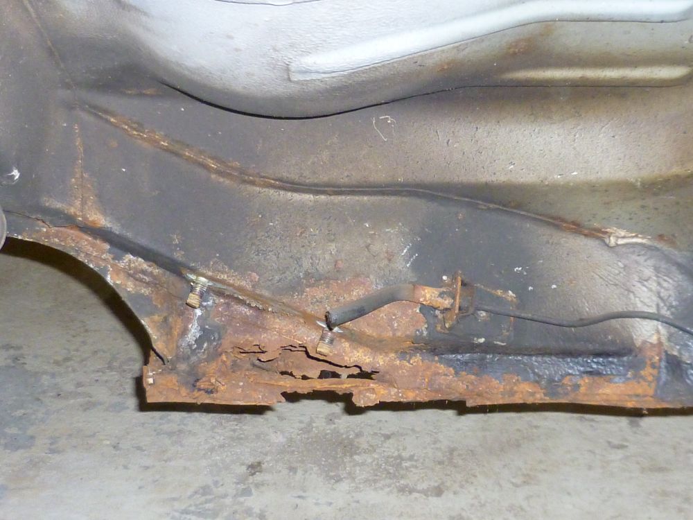 Am Sonntag habe ich den Rocco mal auf das Drehgestell gehoben und von unten inspiziert. Rost, Blech, Loch, Lack, Unterbodenschutz, alles was ich erwartet habe.