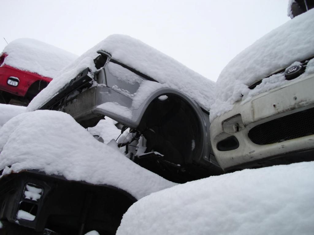 Thront mittlerweile als letzter auf drei anderen Karossen, Beifahrertür fehlt, Heckscheibe kaputt, Rülis weg. Die Fahretür hat eine Delle und am fahrerseitigen Kotflügel rostet es an der Blinkerecke, der andere war zugeschneit
