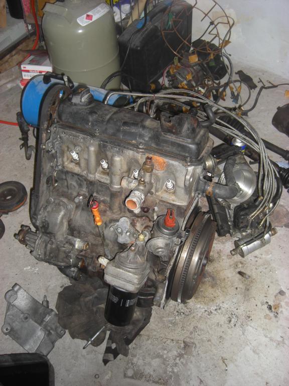 Günstig kam ich an einen PF Motor mit Getriebe und Kabelbaum (alte ZE) aus einem Golf 2 GTI mit 107 PS und selbe Anzahl an Kilometern.