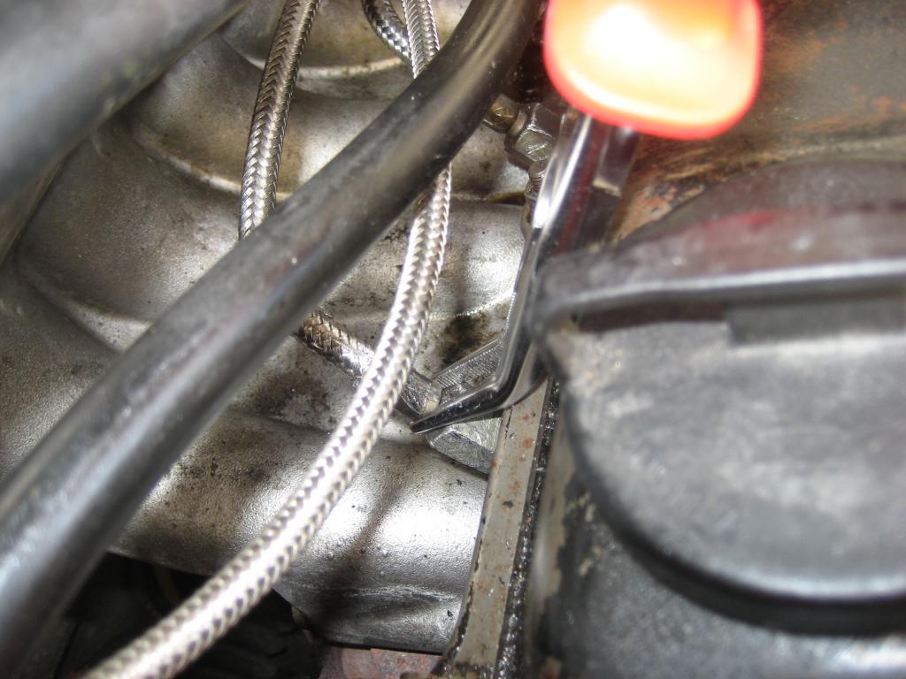 Wie genau setzt du die Spitzzange an? Am Sechskant, also nur kraftschlüssig oder oben am Anschluss des Stahlflexschlauches (siehe Bilder unten).