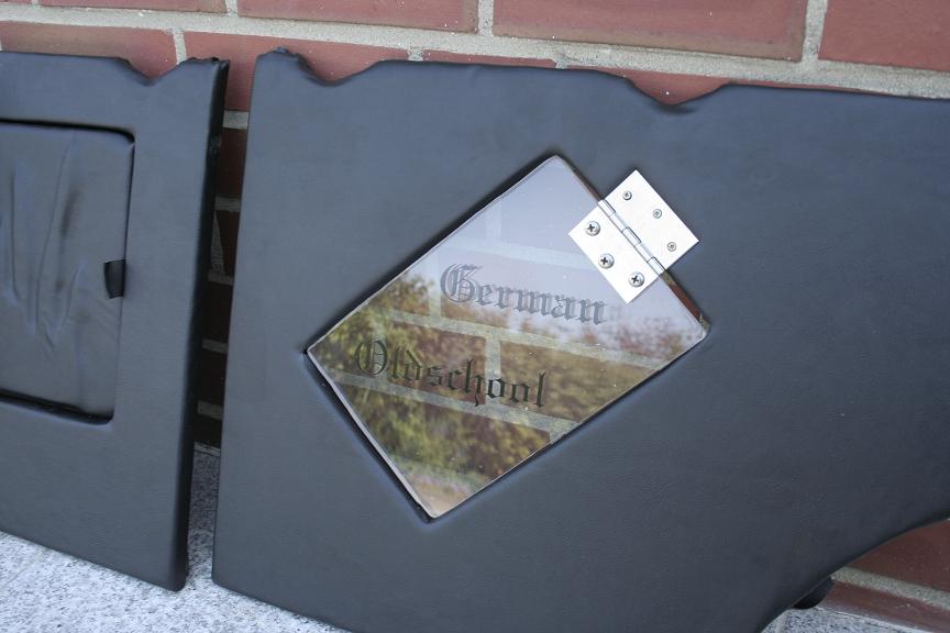 Sie werden direkt unter die Seitenablagen gedrückt und halten auf Spannung. Jew. links u rechts ist eine Öffnung, wie auf den Bildern zu sehen. Auf der linken Seite aus dickem Plexiglas, damit von hinten die Beleuchtung wirkt.