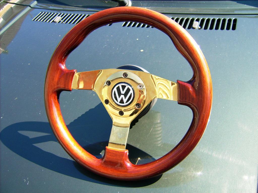 goldenes 32er JAMEX Holzlenkrad, komplett mit Nabe
