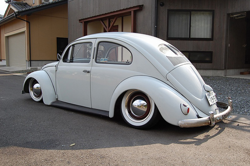 Kenn das nur, wenn man nen alten Käfer ohne Schräglenker achse / also Pendelachse richtig tief legt, dann sieht das son bißchen ähnlich aus. ist aber eher ungewollt.