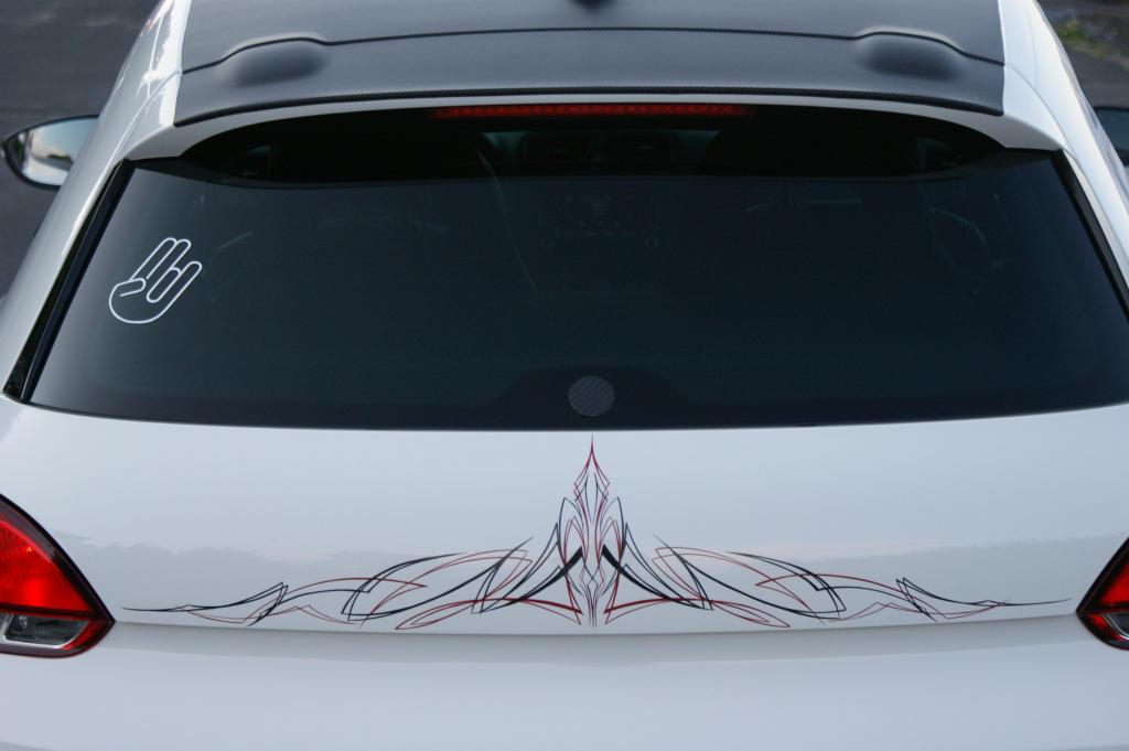 Heckklappe wurde mit rot-schwarzen Pinstripes veredelt .