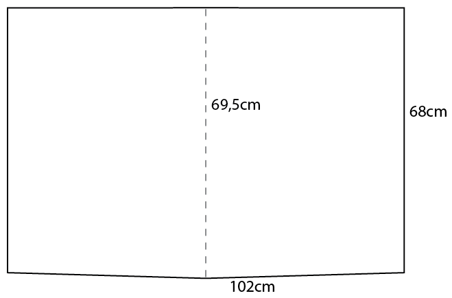 Breite 102cm, Länge an den Außenseiten 68cm und in der Mitte 69,5cm