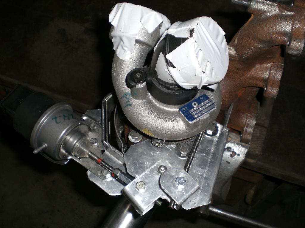 Sieht so aus als ob der Ölablauf oben sitzt und der Ölzulauf unten. Kann mann aber schlecht erkennen. Ich hatte zumindestens so einen Turbo mal verbaut .Kann mann aber auf benziner umbauen. Mann muss nur auf der Mitnehmerscheibe ein Neues Loch für die Schaufelsteuerung um 180° bohren und dann kann man das Verdichtergehäuse drehen . Der turbo erzeugt in einem 1,8 L Benziner 1.73 Bar Ladedruck uns das schon sehr weit im unteren Drehzahlband.