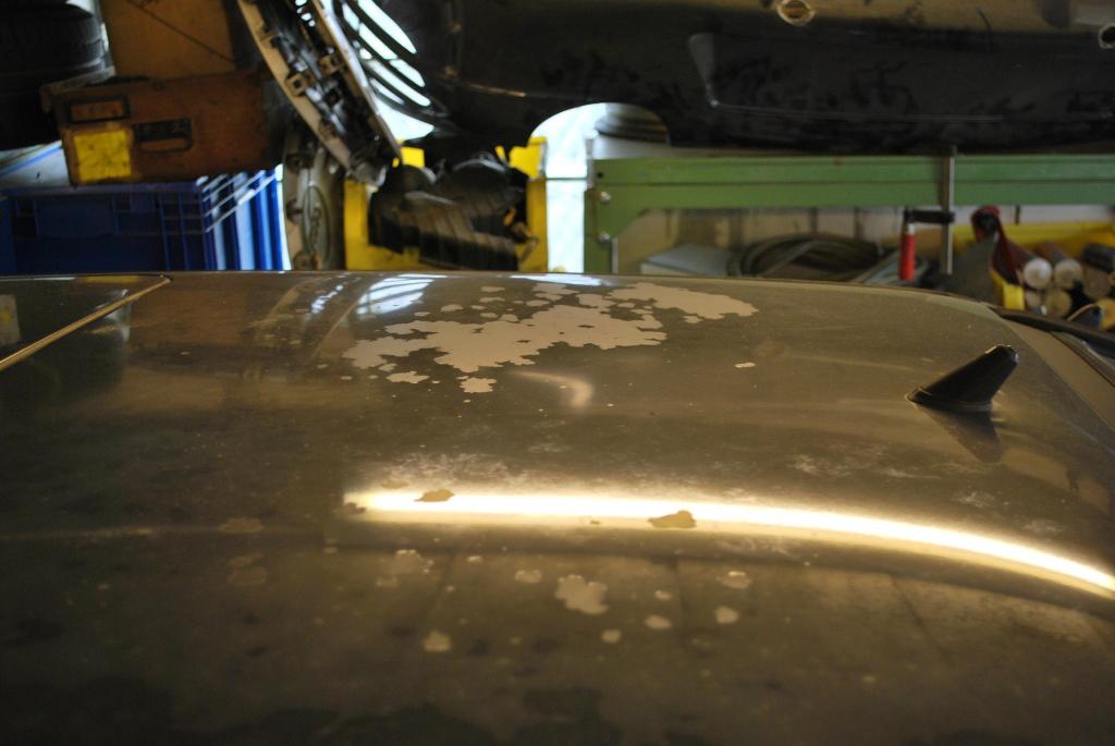 Auf dem Dach löst sich der Klarlack