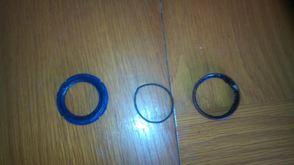 Links der Neue Wellendichtring , Mitte die Feder wo mir entgegenkam unr Rechts die Alte Lagerschale