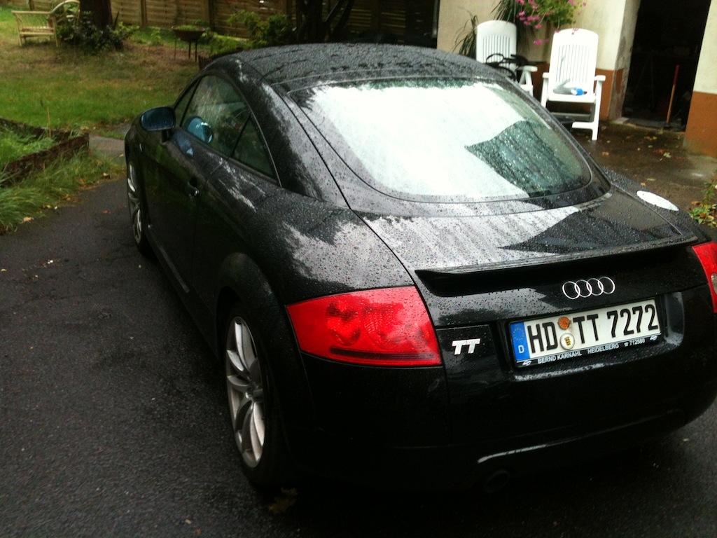 Der wagen ist schwarz mit 18 zoll audi felgen . Der wagen hat einen quattro sport umbau , das heisst er hat keine rueckbank sondern hinten eine querstrebe und ein netz. Gab es auch original von audi. Der wagen hat ein soundsystem von jehnert design verbaut . In den tueren jeweils 4 baesse .....sieht man aber nicht .