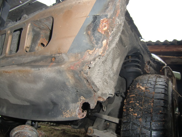Von hinten muss ich auch nochmal Fotos machen. Es sah so schlecht garnicht aus, aber nachdem die Kotflügel runter waren, kamen die schwarzen Löcher zum Vorschein;)