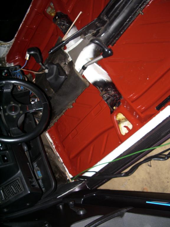Habe jetzt die Bodenwanne entrostet und die guten Bitumenmatten von Würth drin, zu sehen ist leider nur der Primer, hab meine Fotomaschine in der Halle verklüngelt