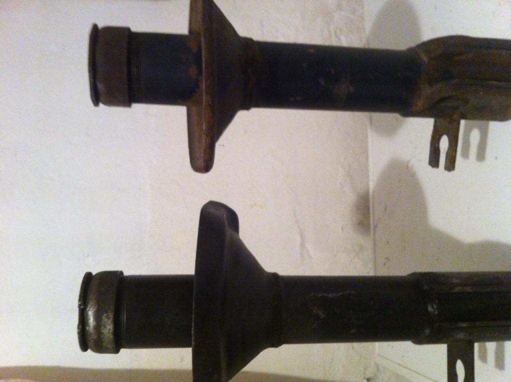 Einmal mit einem höher angeschweißten Aufnahmeteller für die Federn (der Teller hat einen "flachen" Rand)