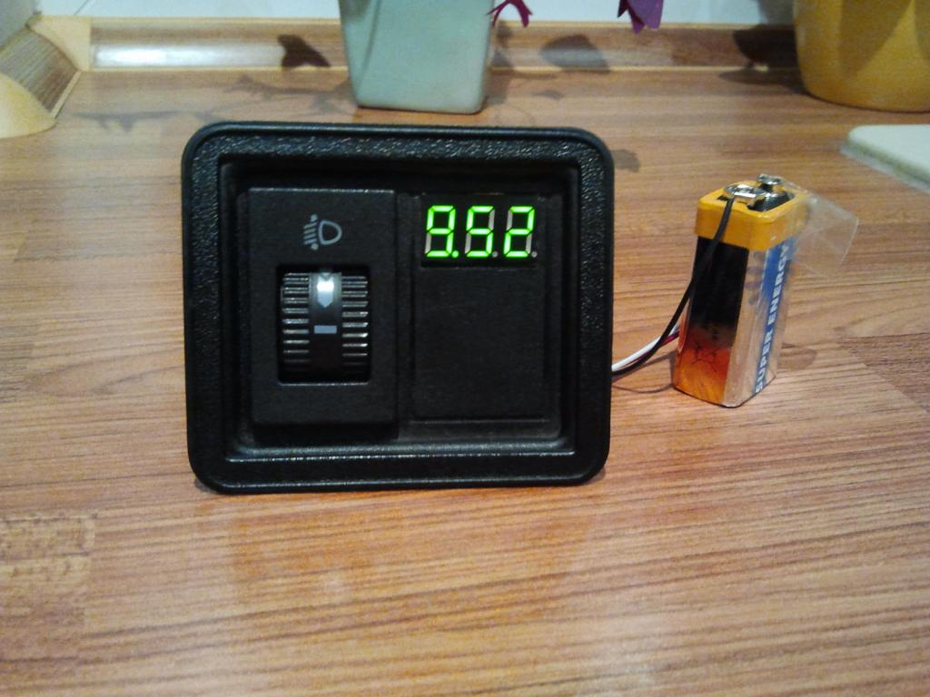 hatte heute Abend Langeweile und ein digitales Voltmeter gebaut. Da ich später noch eine analoge Öldruckanzeige neben dem Ascher verbaut werden soll, fiel diese Stelle als Platz raus. Bei Ebay hab ich für knapp 7 Euro die Anzeige erstanden - grünes Display, geringe Abmaße (http://www.ebay.de/itm/370830421647).
