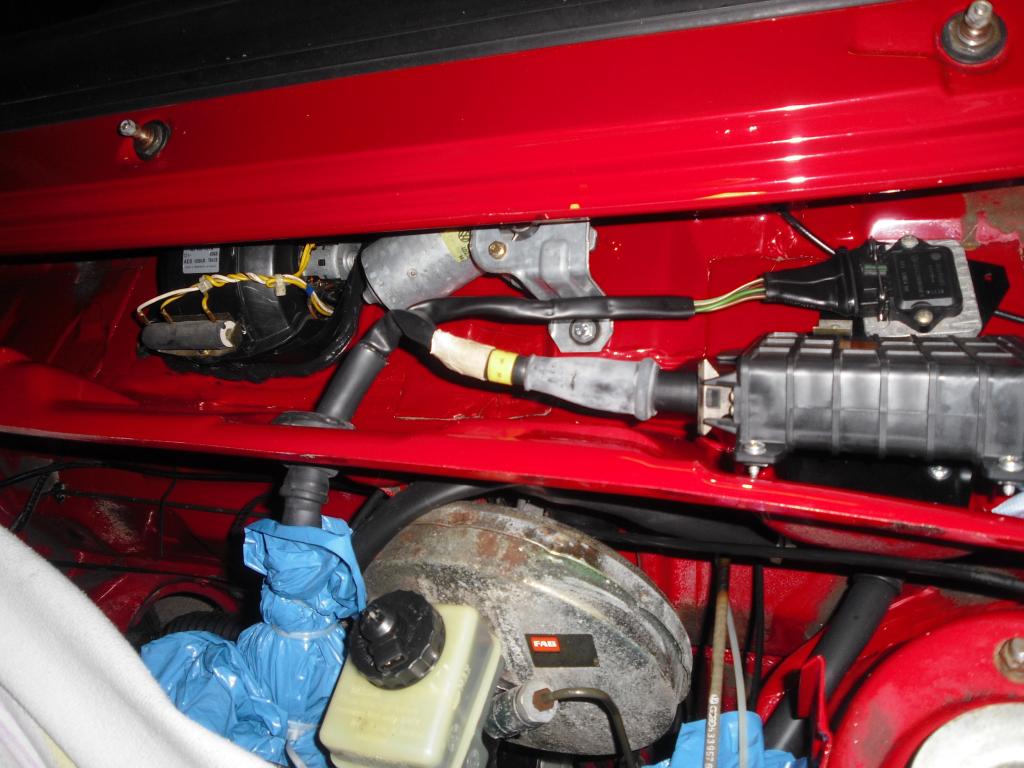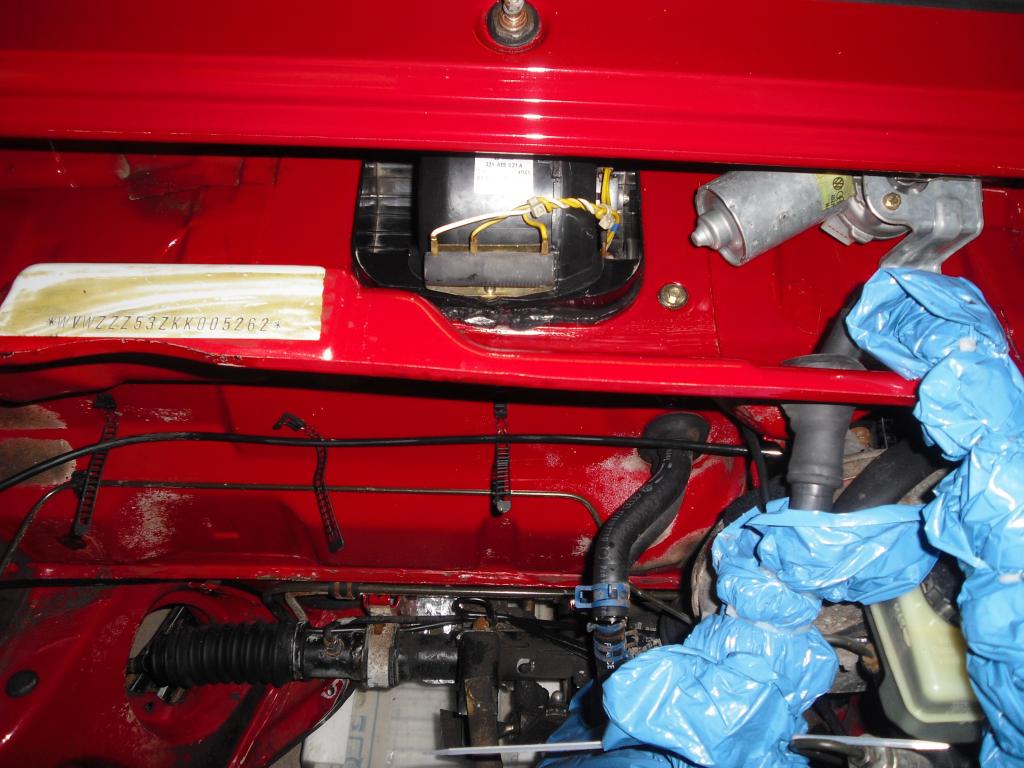 hinter der Spritzwand sieht es auch gut aus, der überholte Innenraumlüfter und das überholte Wischergestänge finden inklusive Zünd- und Motorsteuergerät mit neuen Schrauben Platz: