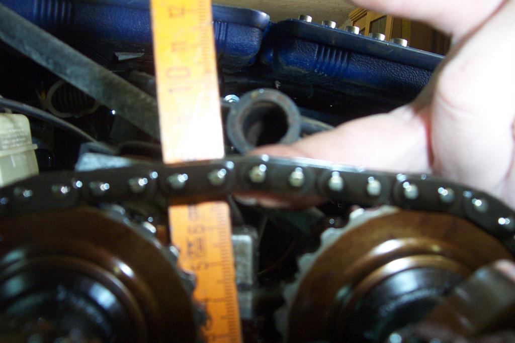 Wenn man die Nockenwellen auf OT einschraubt, passiert da eigentlich nicht viel. Die Kette braucht etwas Durchhang, sie darf auch nicht völlig spielfrei laufen. Die einzige Quelle auf die Schnelle für ein Maß wäre das JHIMS, ob dort was zu den 16V steht. Gefühlt sind 10 mm viel, aber das muss nichts heissen.