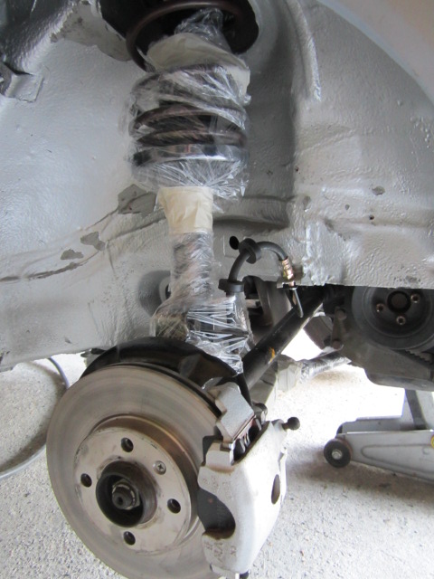 So, heute die Türen wieder eingebaut und die Dreieckslenker, Stoßdämpfer vorne und hinten sowie die Ausleger der Hinterachse mit Frischhaltefolie eingepackt.