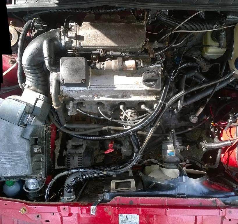 Auf jeden Fall hatte ich (Danke Markus!) noch einen fast neuen 16V-Kühler im Keller liegen mit SEAT-Schläuchen. Das passt alles ganz nett, bis auf den Punkt dass an meinem 2E die neue Lima UNTEN befestigt ist.