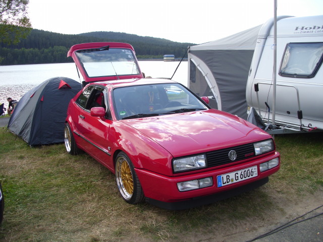 Cooler Campingplatz, bei schönem Wetter wie heute, mit Bademöglichkeit im Bergsee, auf dem Gelände gibt es eine lange Wasserrutsche auch für Kinder geeignet. Ca. 80 Corrados auf dem Platz, 60 waren bei der Ausfahrt dabei. Hat Spaß gemacht.