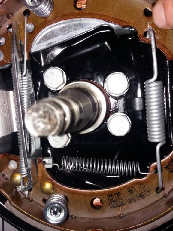 Hat jemand einen Tipp wie ich die untere Feder bei der Trommelbremse hinten in dieses halbmondförmige Loch eingehakt bekomme? Klappt nicht einmal zu zweit. Die Sau hat so Vorspannung...[ATTACH]81242[/ATTACH]