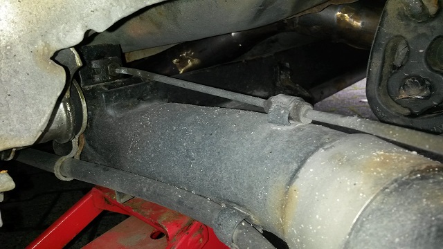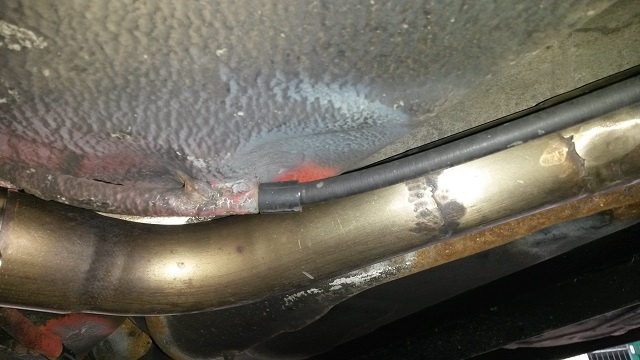 Damit die langen Handbremsseile passen, muß die Führung an der Karosserie gekürzt werden: