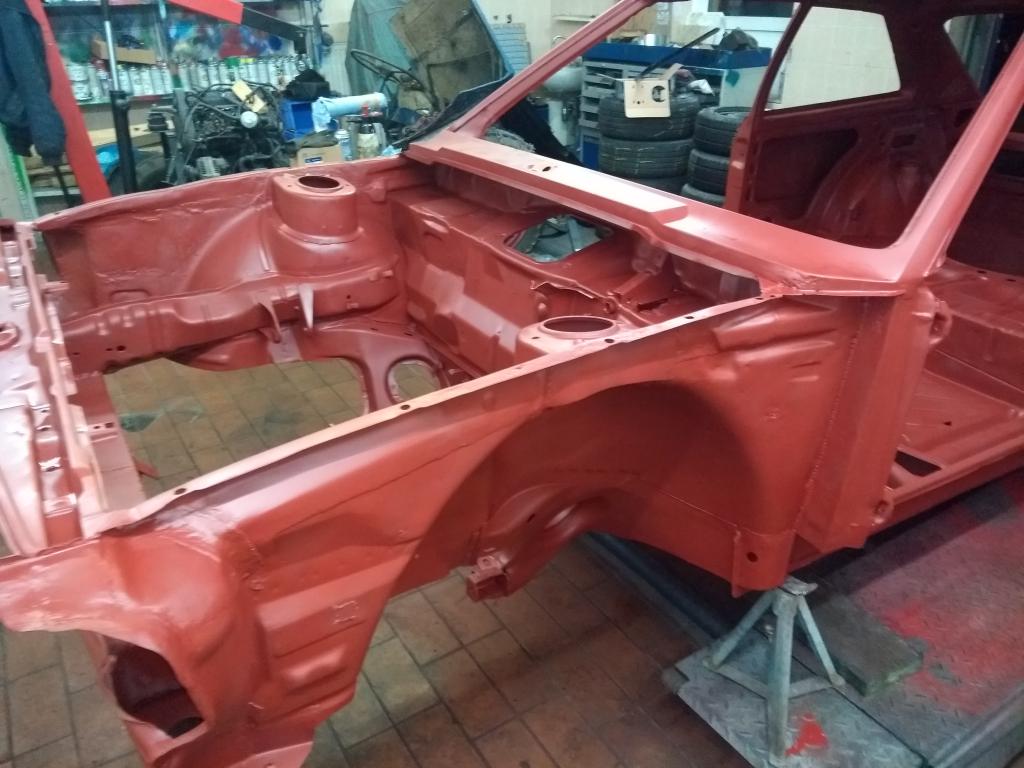 zwei Tage lang mit der Drahtbürste an der Bohrmaschine übers Auto geigelt, mitm Spachtel den alten Kit und Unterbodenschutz abgezogen (alles hab ich nicht abbekommen, ist halt so) und 25 Dosen Grundierung später.