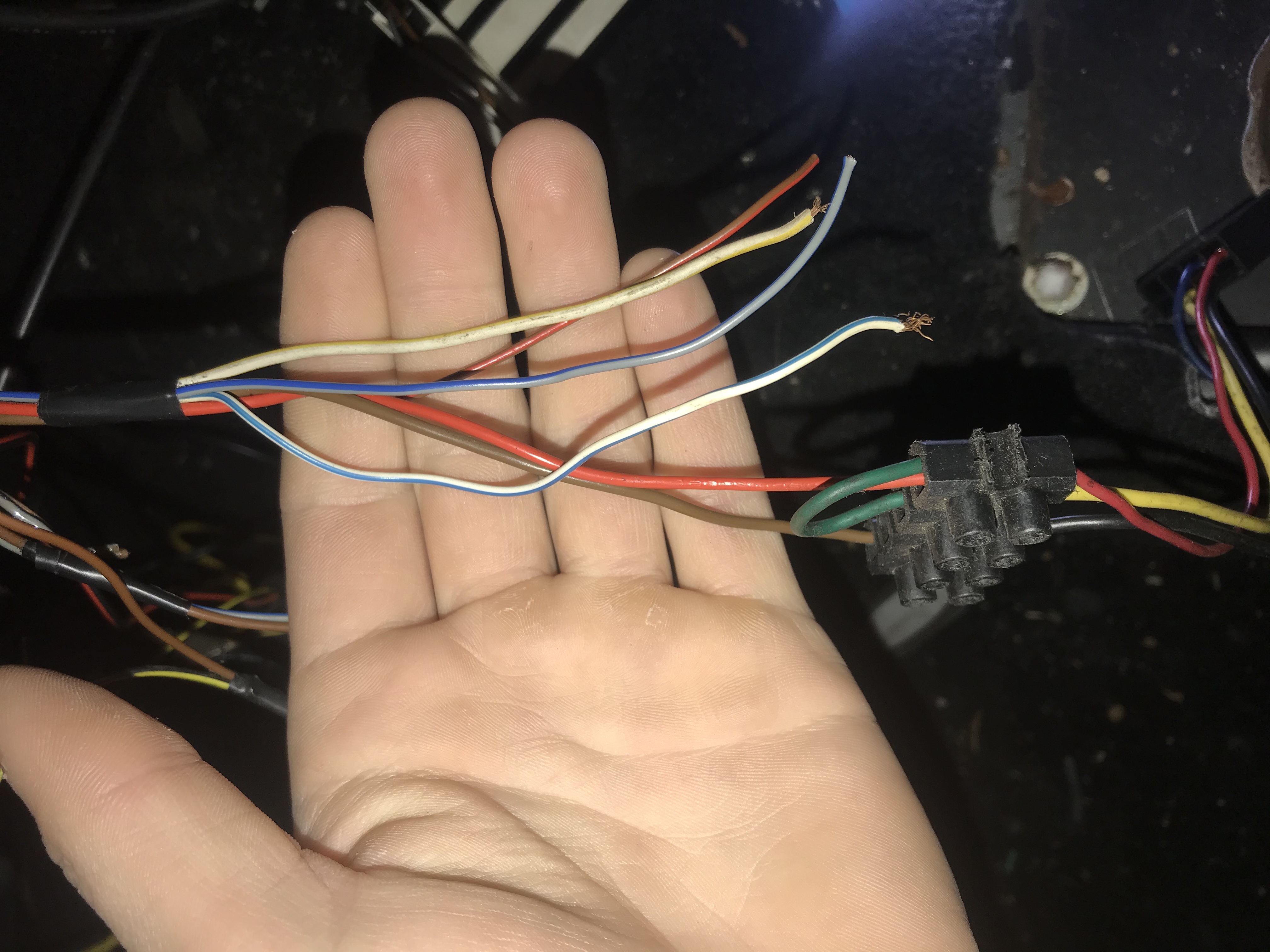 Ich habe mir einen alten Scirocco GT2 zum wieder aufbauen zugelegt und bei den Kabeln im Innenraum ein kleines Problem mit dem Radioanschluss. Ich habe 6 Kabel die ich nicht genau zuordnen kann (rot, braun, blau/weiß, blau/grau, gelb/weiß, rot/braun)(Bild1) habe schon häufiger gelesen das das blau/graue Kabel für die Instrumentenbeleuchtung ist hab die Heizungsblende aber schon angeschlossen (vermute das die gemeint ist)(Bild2) und zu dem hab ich noch zwei Kabel (blau/grau, braun) rumhängen und dir sehen aus als wären die mit Heißkleber oder so zusammengeklebt(Bild3).
