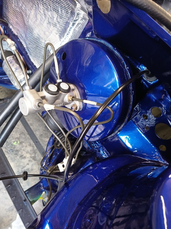 Das Kupferrohr mit dem Übergang hinterm BKV und der Führung zum Getriebenehmer rüber wird nicht die Endlösung. Da kommt noch Stahlflex dran. Aber so habe ich erstmal die Maße. Eigentlich alles gar net so wild, oder?