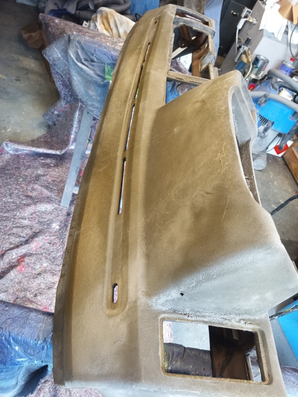 Ich hatte das Armaturenbrett jetzt total zerlegt, soweit möglich. Es ist ja innen 2 teilig aus Pappe bzw Papplaminat. Inzwischen war es teils recht labberig. Hier hilft Epoxidharz und Glasseide. Zunächst nur massiv einstreichen, dann überlaminieren. Das Zeug saugt wie verrückt.