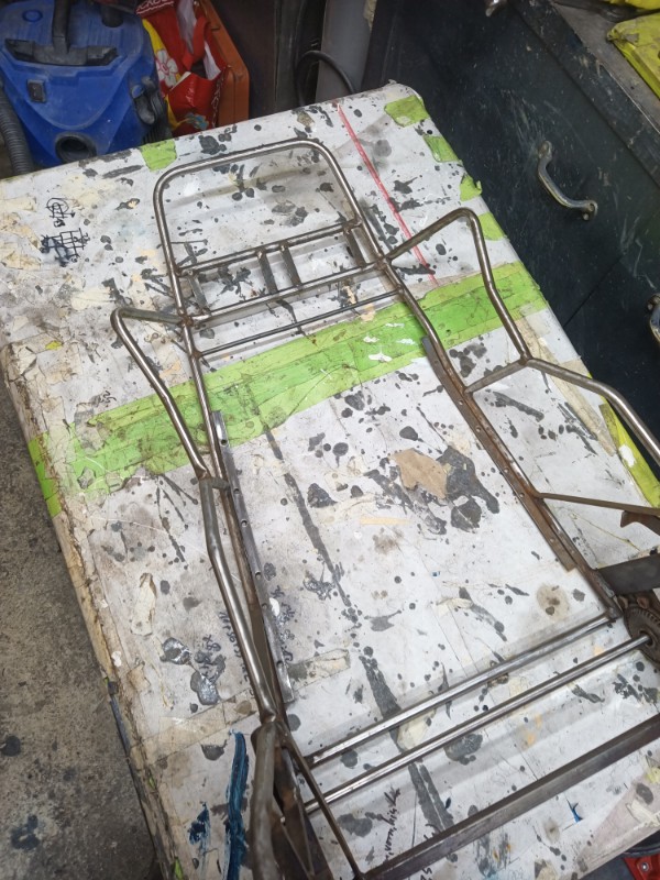 Die Sitzgestelle der Wiechers 301 sind, wieder erwarten, in gar nicht mal so gutem Zustand. Letztlich war es eine gute Entscheidung, diese komplett zu "entblößen" und sie richtig in Augenschein zu nehmen. Die Gestelle bestehen prinzipiell aus Stahl in Baustahlqualität. Die Grundfläche zur Verschaubung unten sind dabei 2 Winkelstähle in 40x15 oder 40x20. Dazu kommen diverse Flachstähle und, hauptsächlich für die Formgebung, Rohrmaterial in 12x9mm.