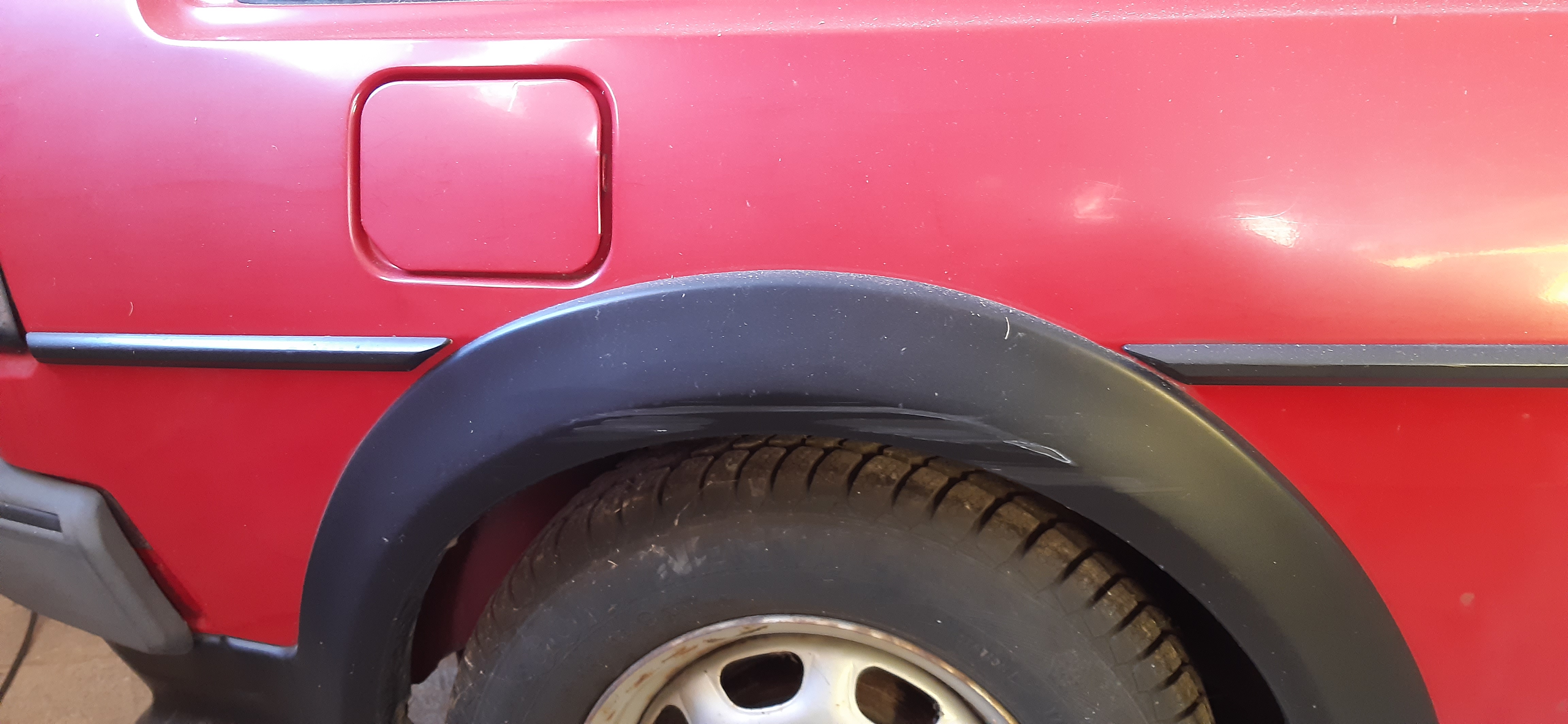 In einem Winter hat eine unbekannte Person (vermutlich Kind) Schnee im Bogen von der Motorhaube gewischt und dabei einen Kratzer in den lack gemacht.