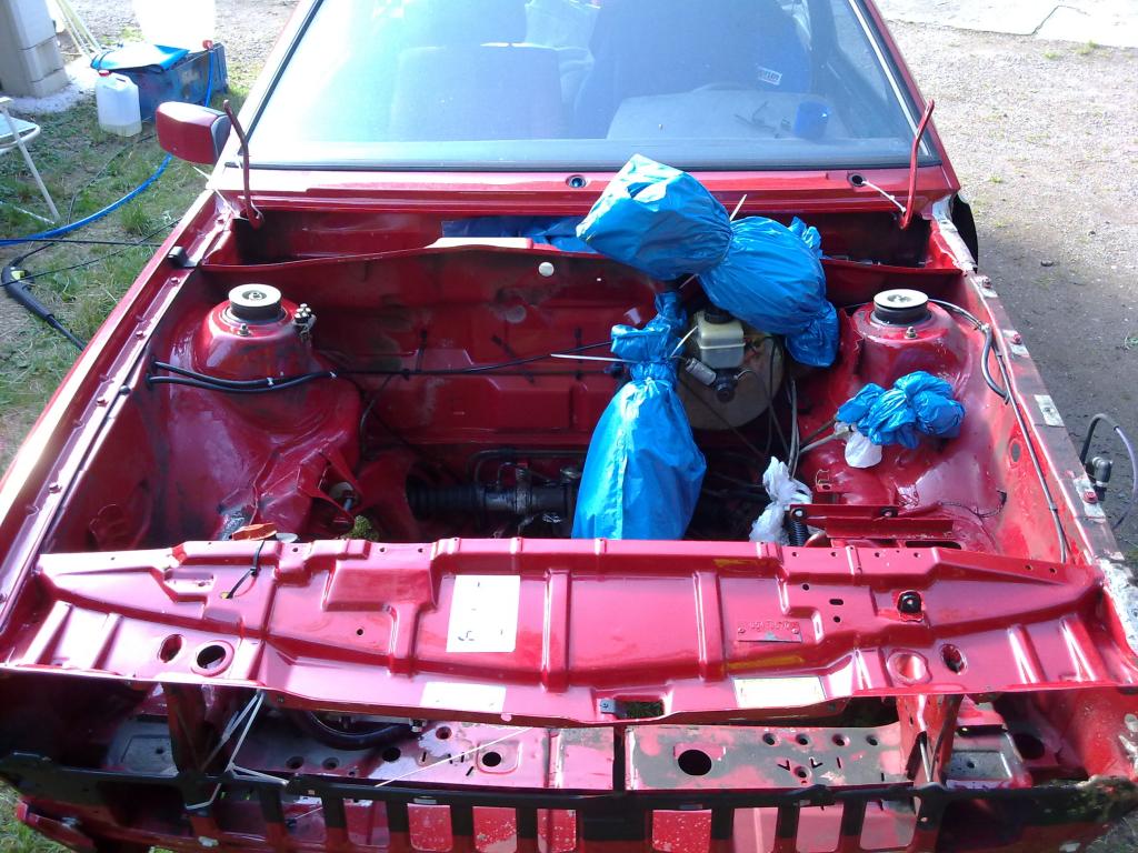 ich hab auch mal die zahnriemenabdeckung (die obere) mal blank gemacht und hab sie rot lackiert.