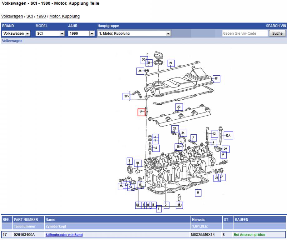 Dein Bolzen (Nr.17) mit Bund trägt die Teilenr. 026103400A
