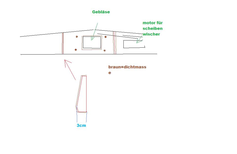 Wie gesagt die Dichtungsmasse um den Gebläsemotor dichtet nicht mehr ab wenn ich drauf drücke kommt da minimal Wasser raus und ich
