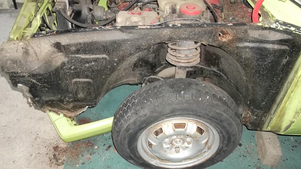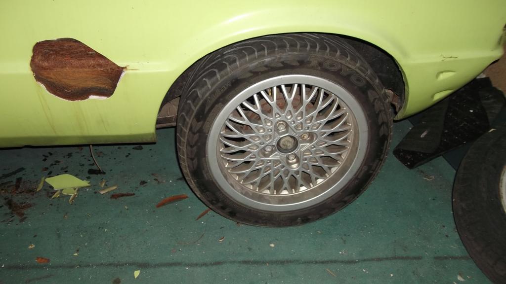 Habe heute wieder was Gemacht am Einser .Scheinwerfer Kühlergrill Ausgebaut ,und Kotflügel abgeschraubt .Und ich bin sehr zufrieden was den Rost angeht .Und anschliesend mal Felgen drauf geschraubt nur vorne passen die net wegen dem Bremssattel.