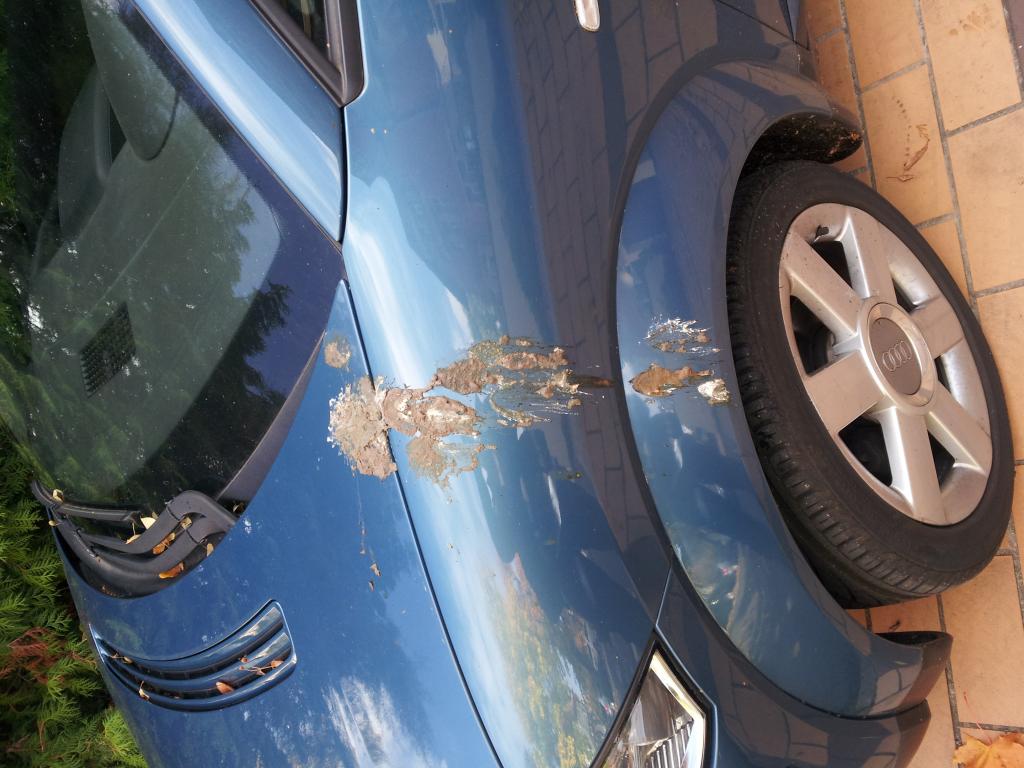 Und das Schönste wie immer zum Schluss, mein Alltagswagen parkte heute Nachmittag draußen, ich hab noch nie so einen riesen Vogelsch***** gesehen