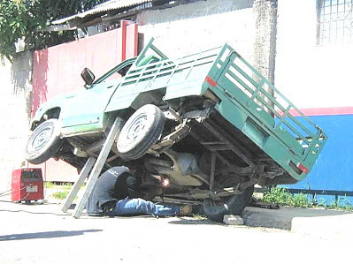 Hebt mann dort den Wagen auf kommen mal schätzungsweise 500kg auf diesen einen Punkt.