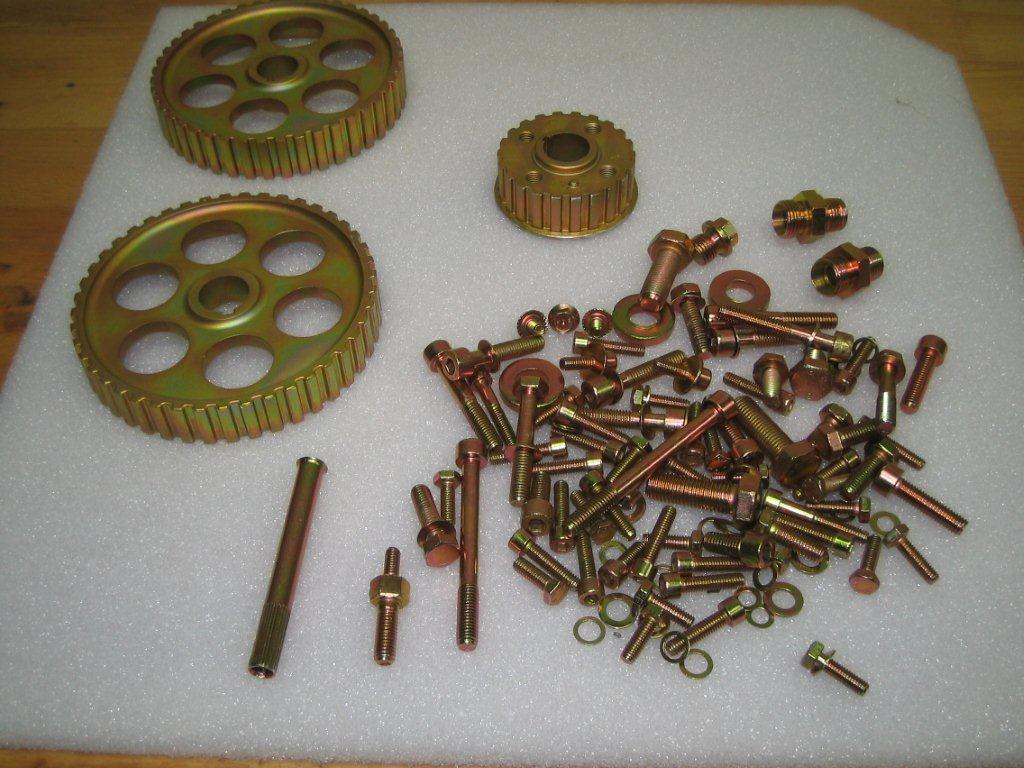 einen Zylinderkopf an dem der Ein- und Auslaß erweitert wird und der etwas größere Ventile mit stärkeren Federn und eine andere Nockenwelle bekommt, einen bearbeiteten original Guß Abgas Krümmer und vier neue 82,5mm Kolben habe ich bestellt.