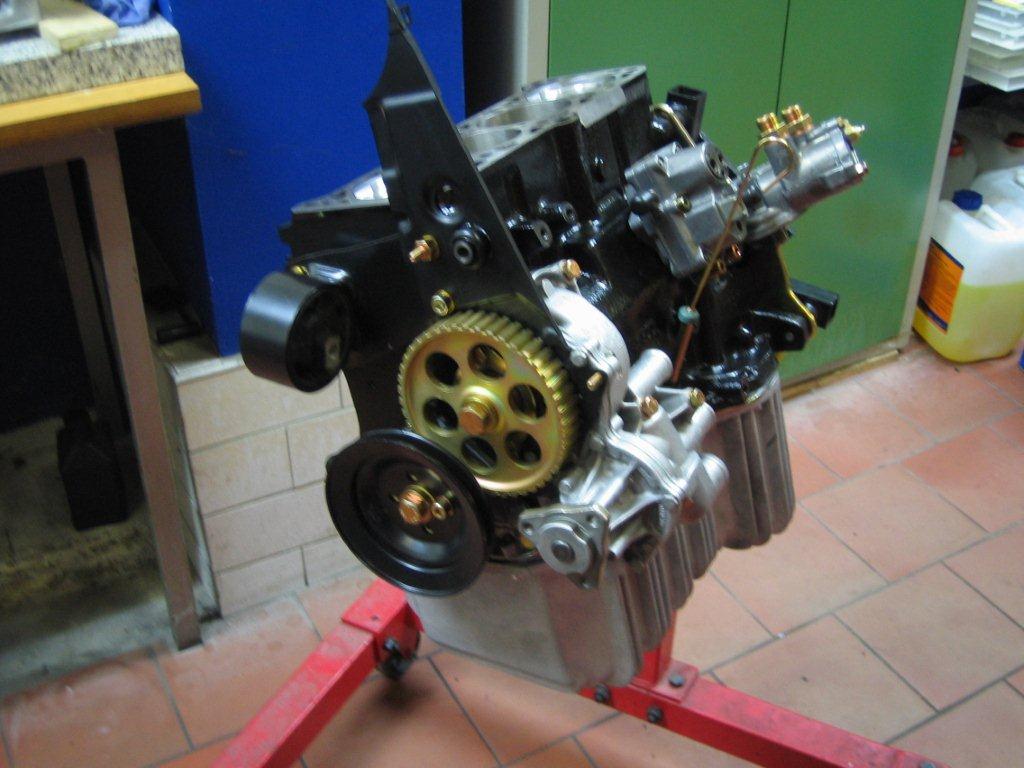 Das Problem mit dem Zahnriemenschutz habe ich nun auch gelöst, nachdem ich wußte wie so ein "alter" Zahnriemenschutz aussehen muß habe ich bei meinen gesammelten Teilen gesucht und einen gefunden. Nur gefiel mir nicht damit da der Zahnriemen nicht kpl. abgedeckt ist, und da ich den "neuen" Zahnriemenschutz schon gekauft hatte, habe ich den Kurbelwellenflansch ab '79 bestellt und eingebaut.