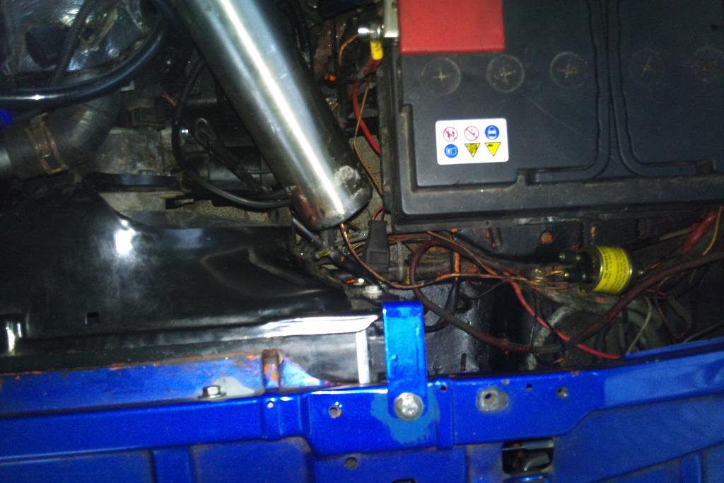 Ich hänge mal spaßeshalber noch ein Bild dran, Stand heute nachmittag. Bin gerade an den Ladeluftverohrungen. Muß die Batterie wohl ne Nummer kleiner kaufen und werde den orginalen Luftfilterkasten wohl auch nicht verwenden können. Mal gucken.
