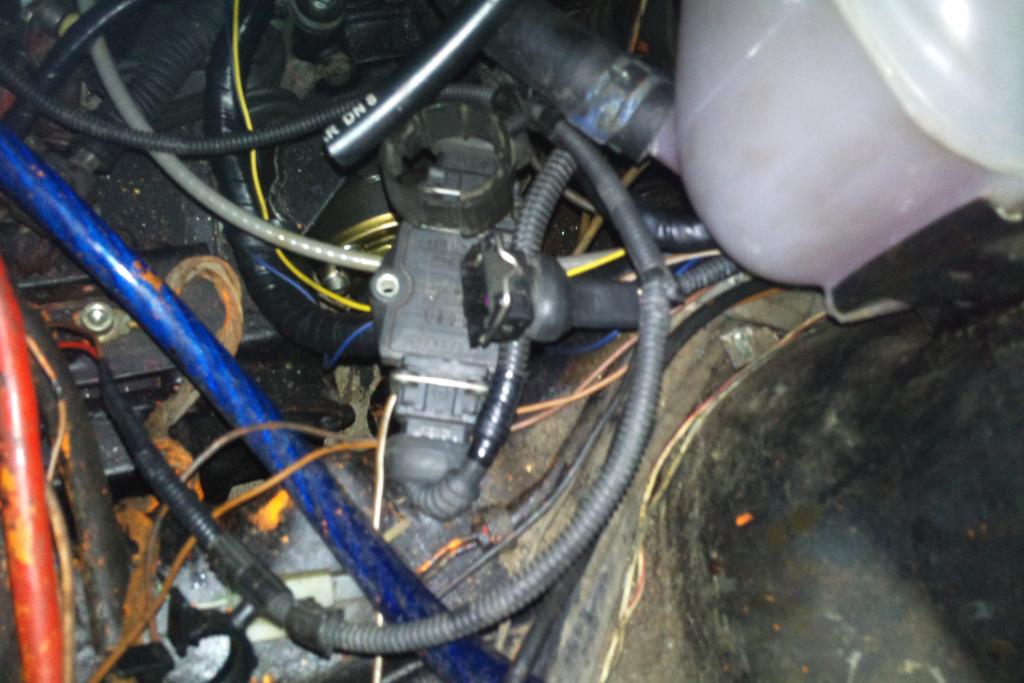 Masse ist da, Plus ist ebenfalls gegeben. Das Steuergerät lässt sich ja nun auch auslesen. Sollte also eigentlich irgendwie gehen. Mhm. Habe allerdings auch noch einen 3fachstecker des neuen Kabelbaums vom 1,8T im Motorraum, den ich nicht zuordnen kann. Er befindet sich vorne links im Bereich des Doms, also relativ in der Nähe des Luftfilterkastens.