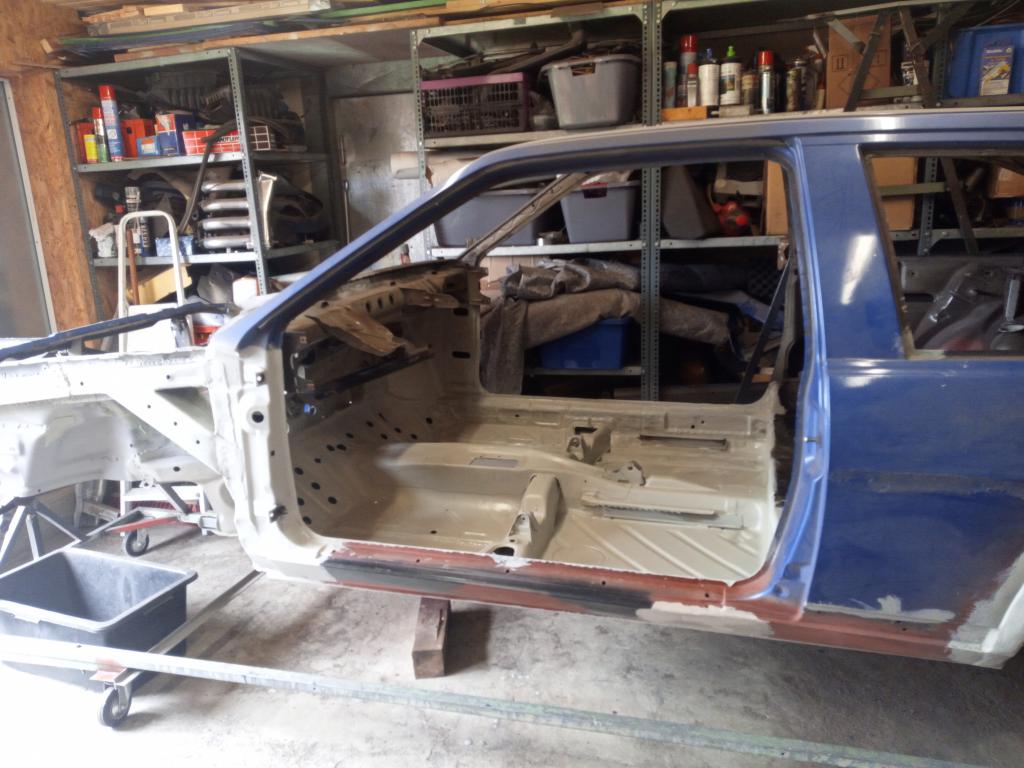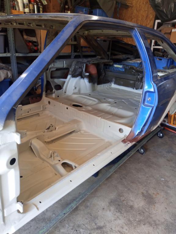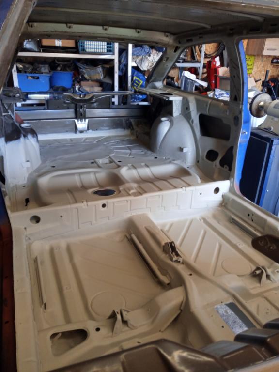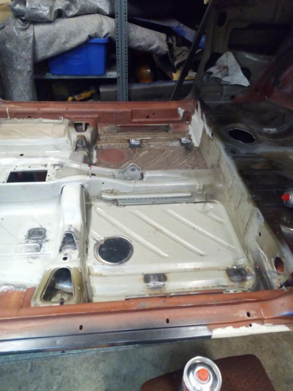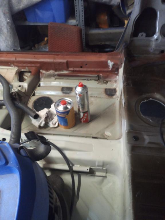 Derzeit bin ich gerade an den Bodenblechen im Innenraum. Reinigen und EP Grund drauf.