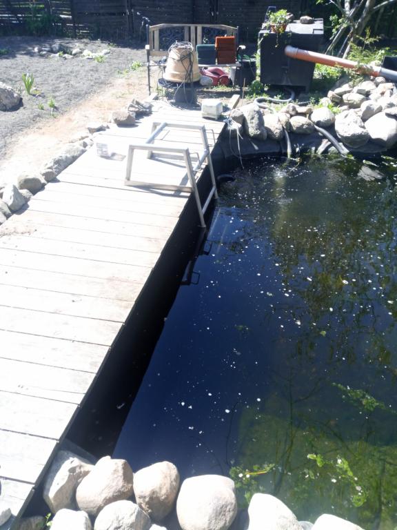 Als ich zuletzt meine Mutter besuchte und sah, wie sie an ihrem Fischteich Ordnung machte, stellte sich mir die Frage, wie sie - falls sie mal rein fällt - wieder raus kommen will. Bei 1,50 Wassertiefe ist das nicht ganz ohne.