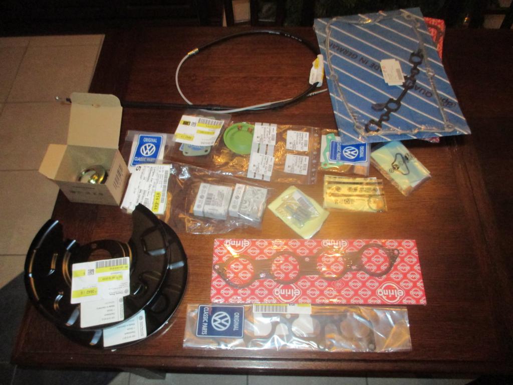 Ich habe einen kompletten Überholsatz für jeweils vorne und hinten über E-bay beschafft. Die Gummibälge von den Führungsbolzen sind ziemlich "unflexibel". Kein tolles Material. Die alten waren soweit in Ordnung und werden aufgehoben.