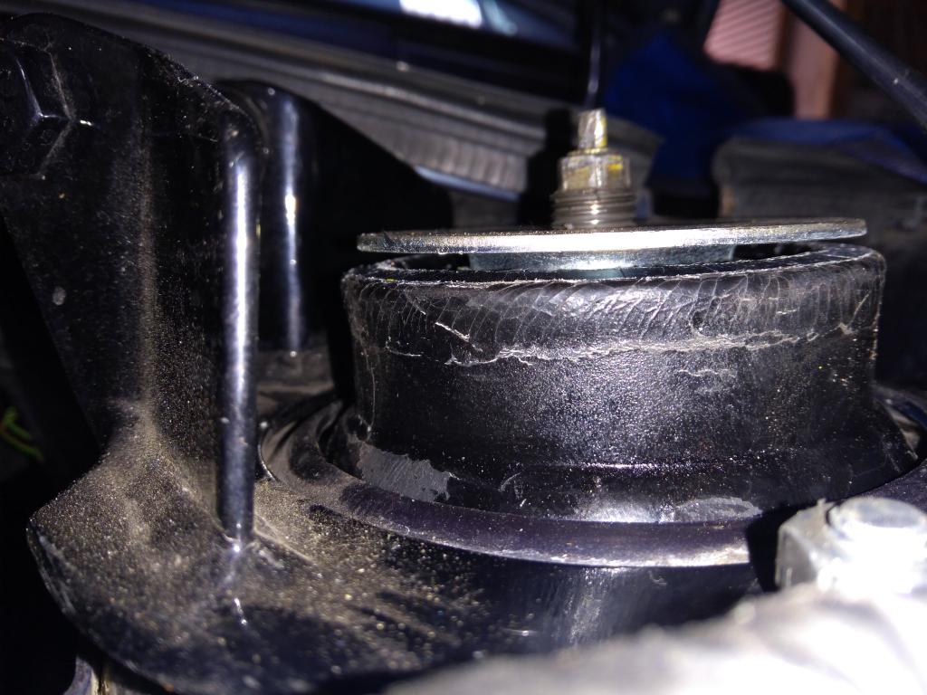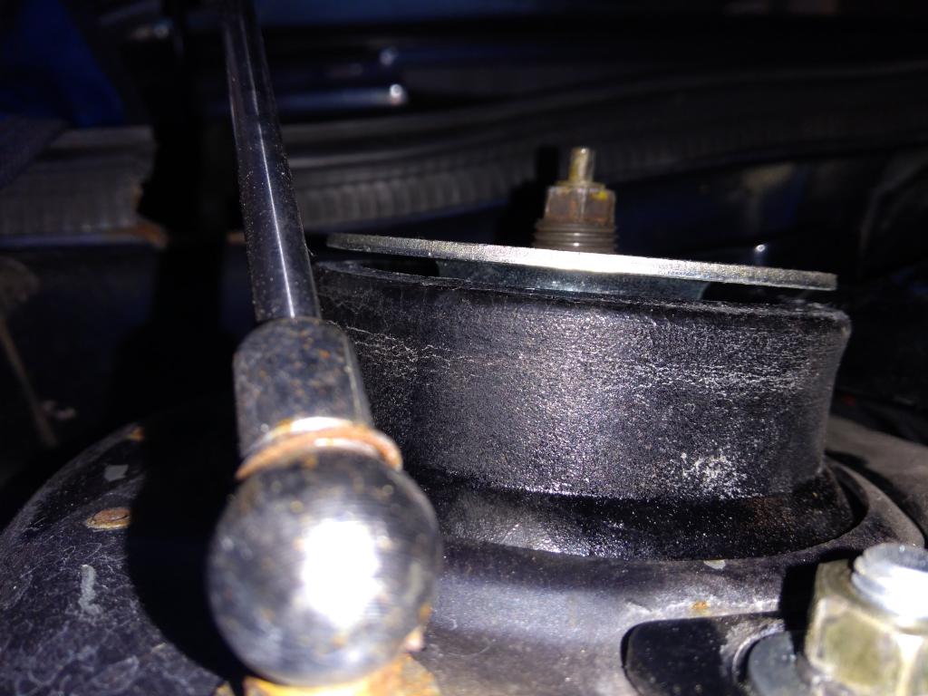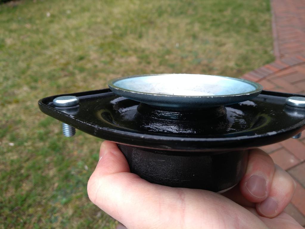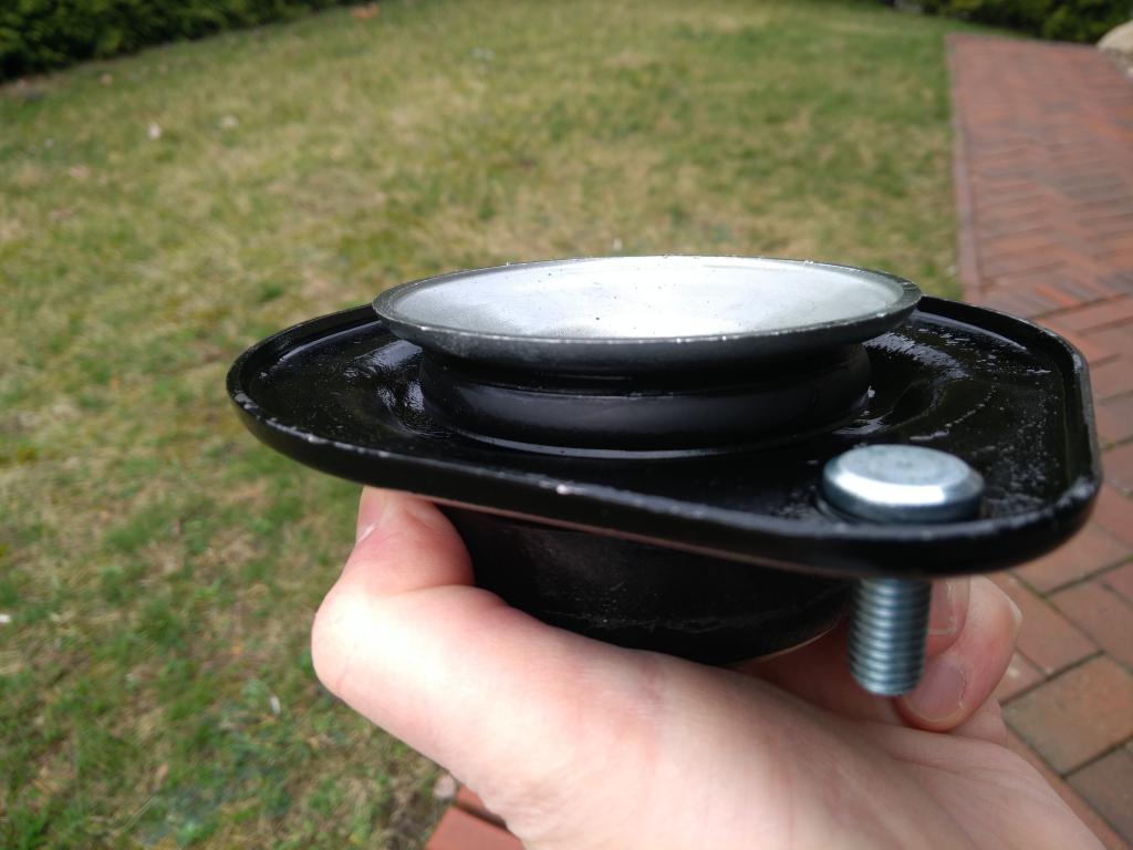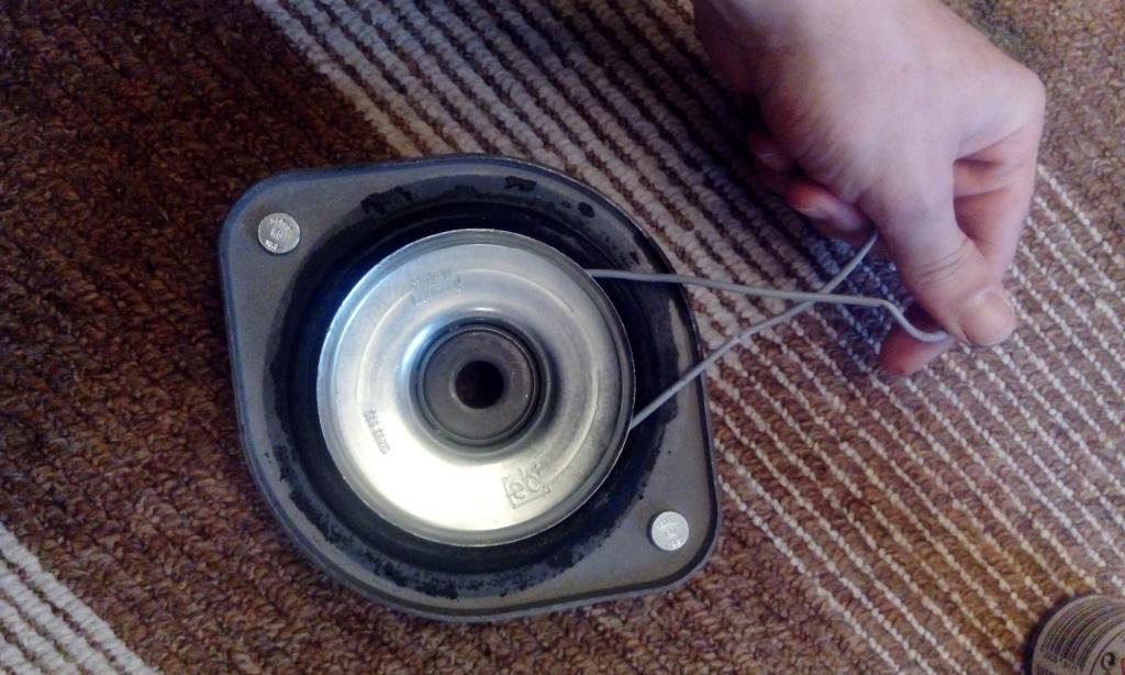 5. Das andere Ende mit einer Zange ziehen und dabei den Domlager passend bewegen, so dass die Litze den Ring gut über den Teller ziehen kann.